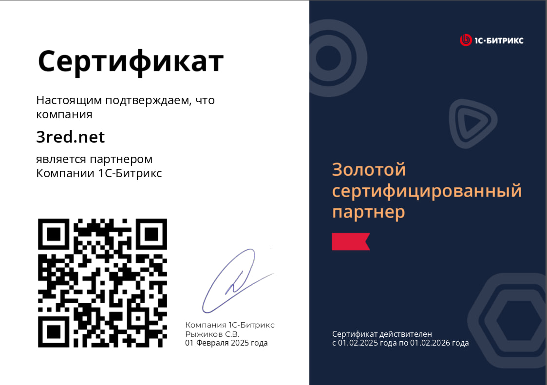 Сертификат "Золотой партнёр"