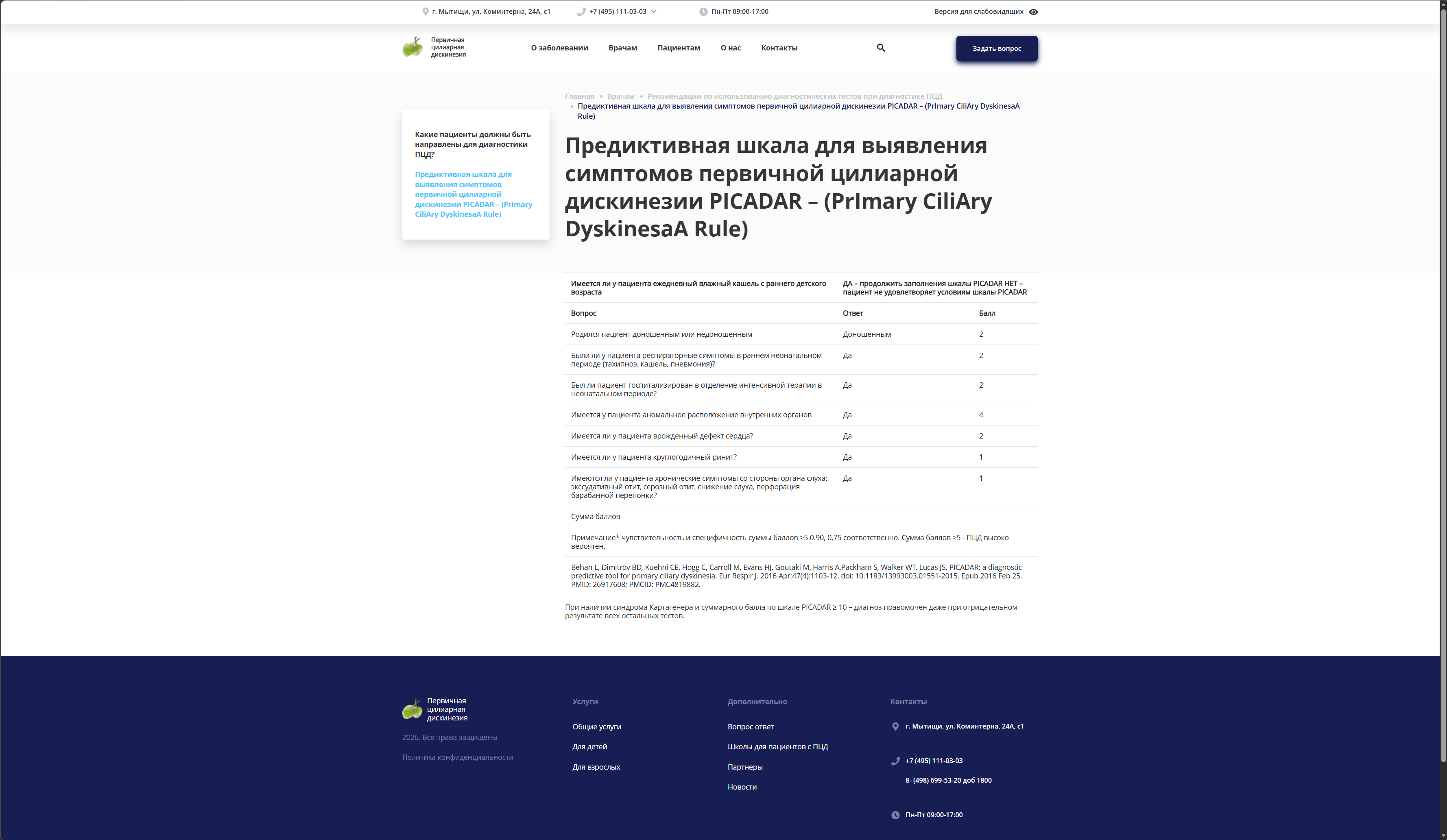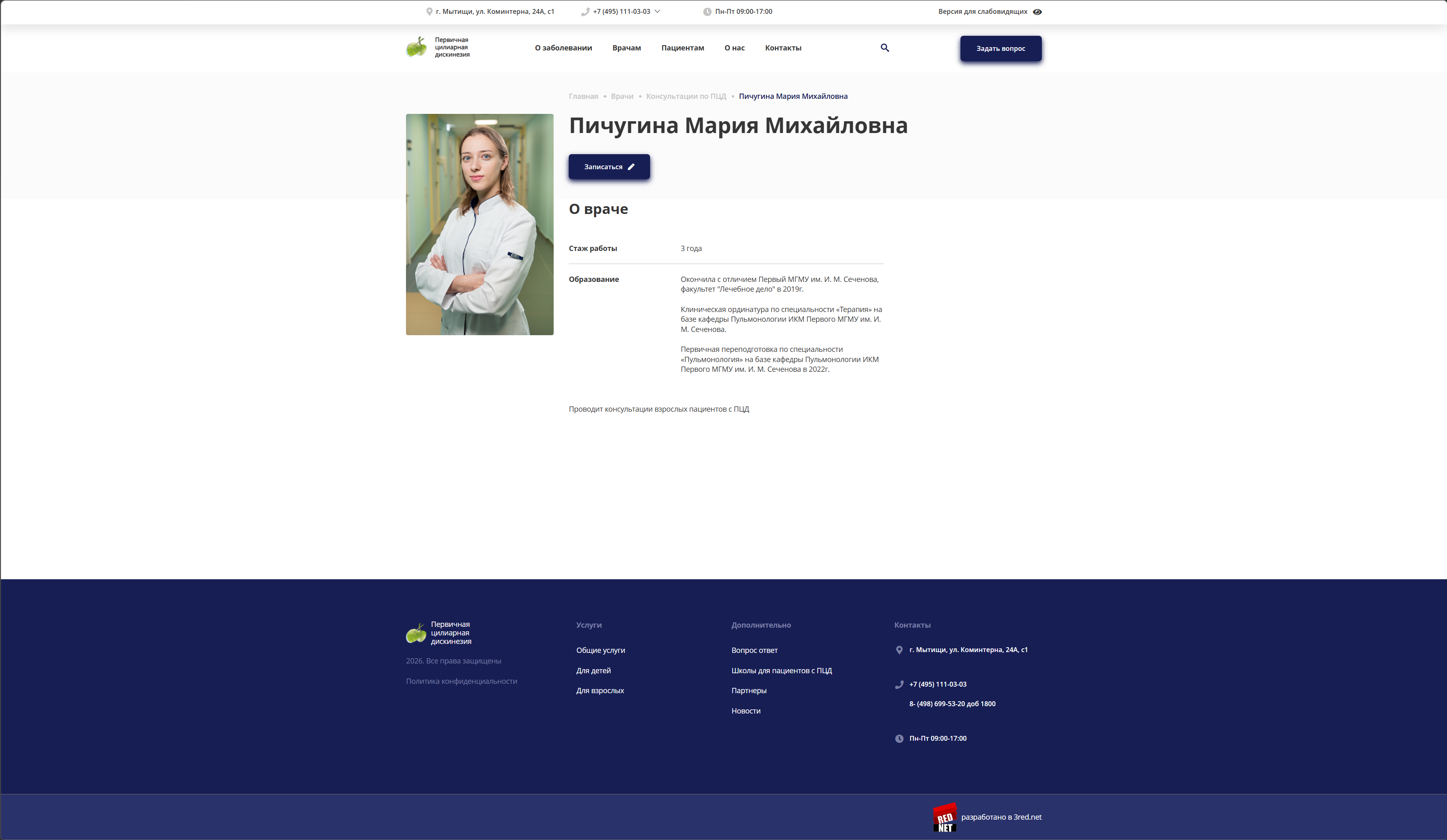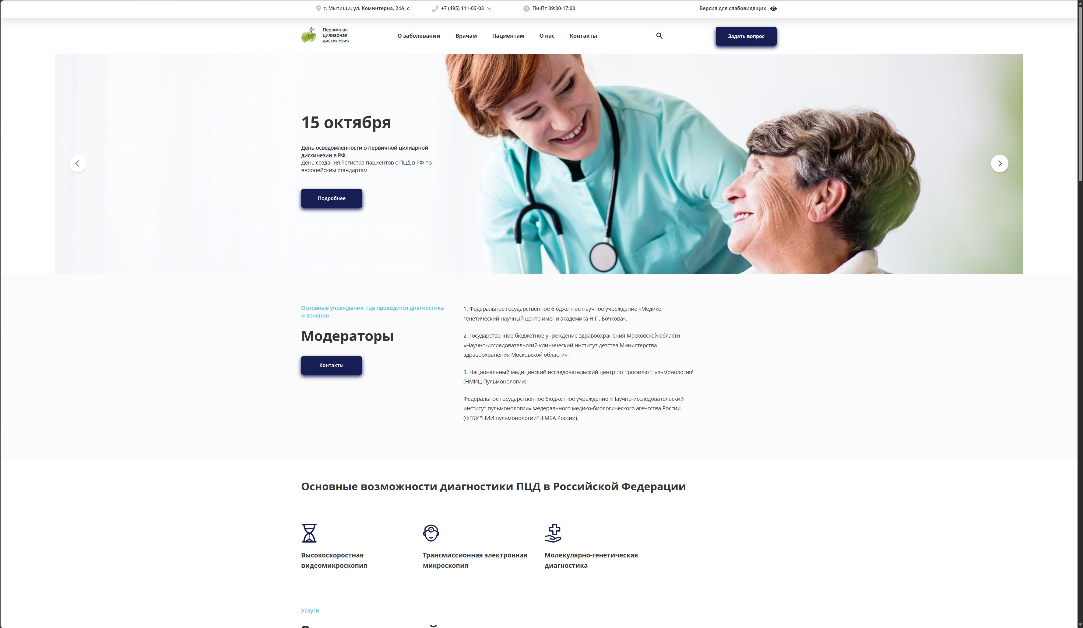 Адаптация под контент: Структура сайта pcd-rf. ru пересобрана так, чтобы сложные медицинские термины (трансмиссионная электронная микроскопия) читались легко, как блог.